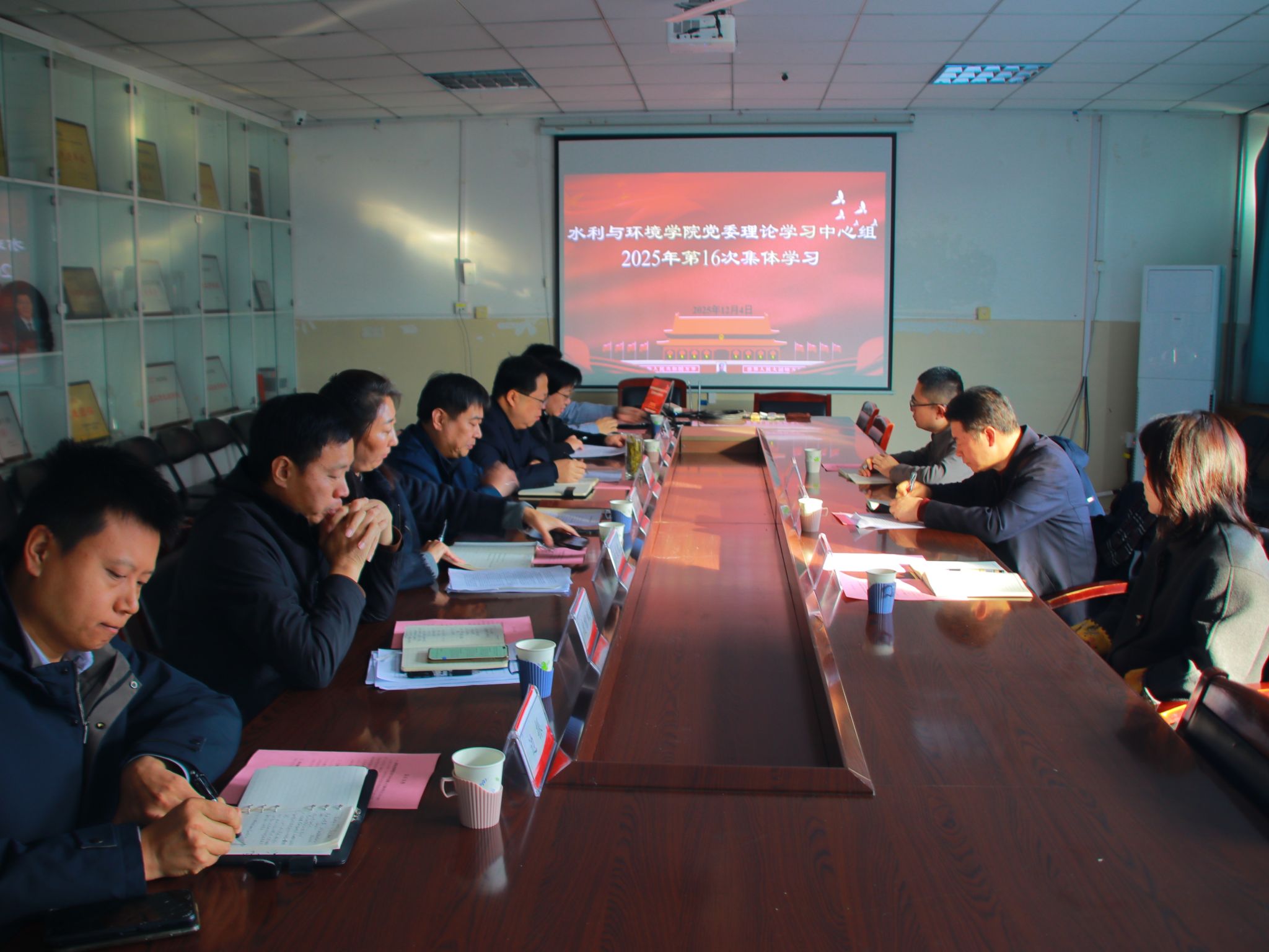 会上,学院党委理论学习中心组围绕《求是》刊发的 “推进党的自我革命要做到‘五个进一步到位’” 及习近平总书记在广东考察时的重要讲话精神,开展第 16 次集体学习。中心组成员结合工作实际交流学习体会。学院党委书记王义在总结发言中强调,要筑牢思想根基、提升政治自觉,切实把理论学习成果转化为推动学科建设与人才培养的实际能力。续铁在点评中指出,本次中心组学习准备充分、主题鲜明、交流深入,取得良好学习效果。他强调,政治理论学习要突出政治性、增强规范性、发挥示范性、提高实效性,不断提高运用党的创新理论解决实际问题的能力。