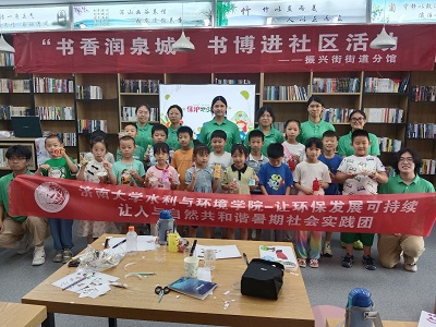为助推大众树立环境保护意识,提高儿童爱护环境、爱护生态的自觉性,太阳成集团tyc151cc赴泉城书房暑期社会实践团于7月15日前往泉城书房开展以“让环保发展可持续,让人与自然共和谐”为主题的社会实践活动。